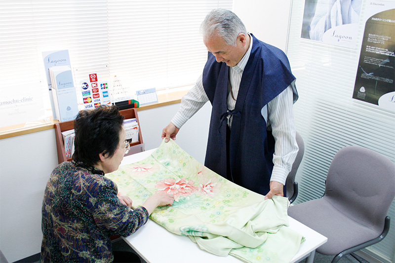 きもの診断士がお客様のお着物を診断し、その場でお見積りをいたします。