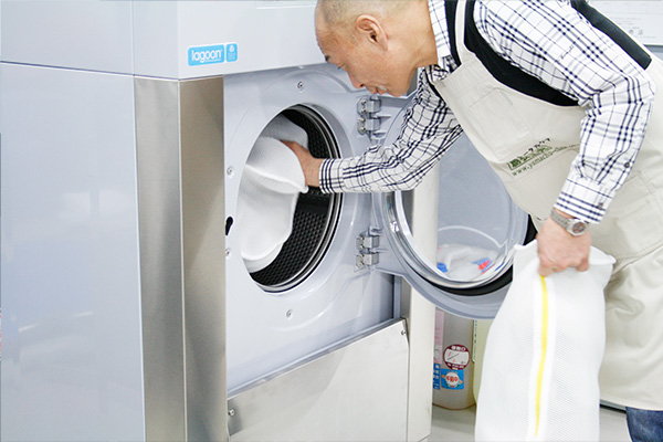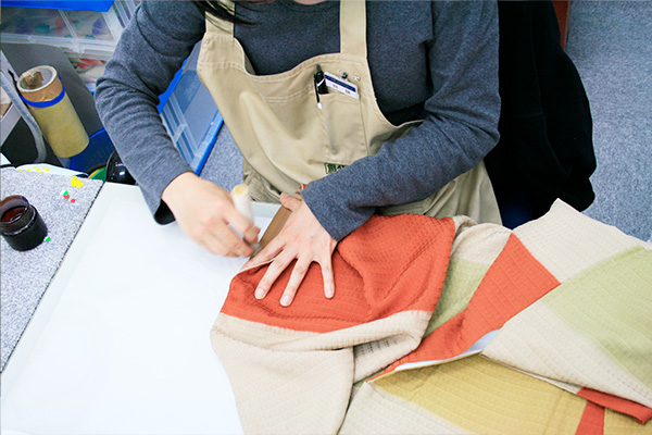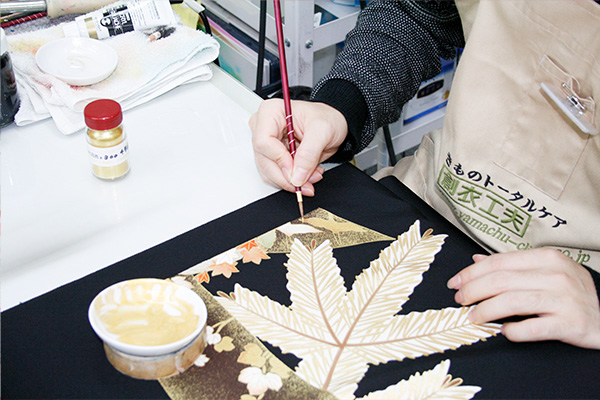 丸洗いだけでは落ちない水溶性のシミや汗、特殊なシミ、時間の経った変色など様々な種類のシミや汚れに対してのシミ抜き作業、ほつれ直しや特殊加工などの作業を、各工程ごとに専門の技術を培ったプロが丁寧に処置します。